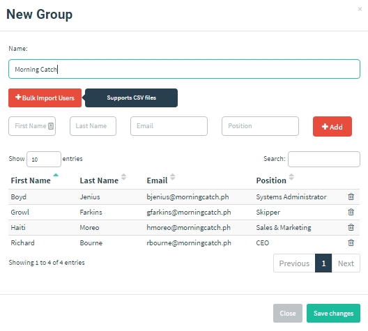 Since we are performing phishing simulation for Morning Catch, we can call our group “Morning Catch Employees”.