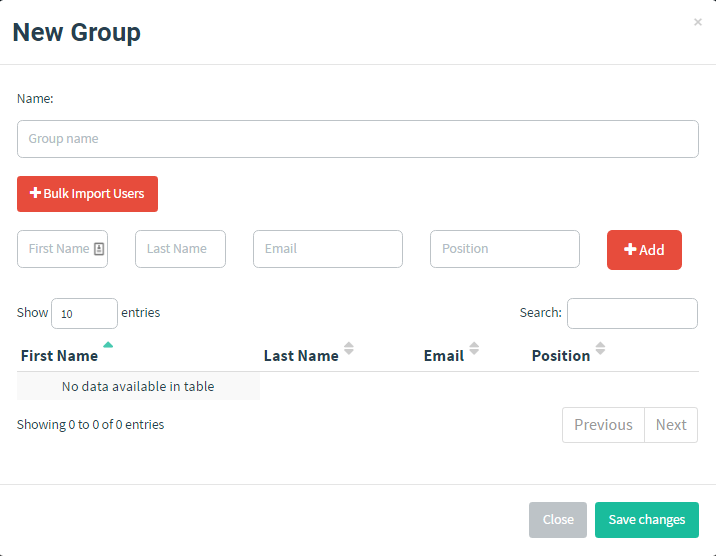 To add users manually, fill in the text boxes for "First Name", "Last Name", "Email", and "Position" and click the "Add" button.